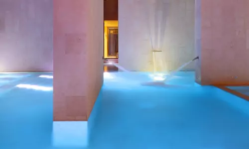 Zentropia Spa & Wellness at Grand Palladium Select Costa Mujeres boasts an expansive hydrotherapy circuit where guests can enjoy a variety of heat and cold experiences before their chosen treatment or spa journey. Begin with the sauna, refresh with a sensorial shower and stimulate circulation with the hot jacuzzi and refreshing cold plunge pool. Enjoy the aromatic, eucalyptus-scented steam room before relaxing in the ambient halotherapy chamber with beautiful Himalayan salt brick walls, inhaling micronized salt particles to improve respiratory and skin health. A few minutes inside the unique snow cabin, where the temperature is maintained at 5 to 23°F (-15 to -5°C), brings down the temperature of the body before progressing to the pools, where invigorating jets massage the neck, back, legs and feet. An additional pool upstairs offers guests an impressive view over the water and access to the Healthy Habits bar where juices, smoothies, and healthy elixirs are served.