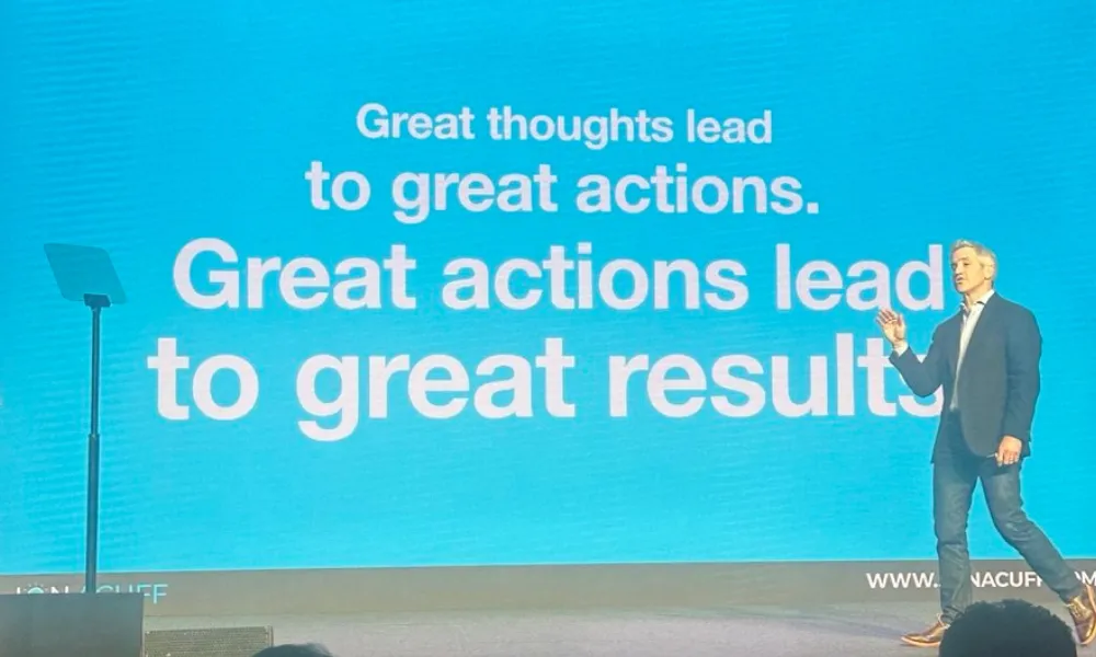 Jon Acuff took the stage and spoke about goals. Goals are the fastest way to get from where you are today to where you want to be. Overthinking stops ideas from flourishing and is the most expensive thing companies invest in every year without knowing it. It’s when what you think gets in the way of what you want.