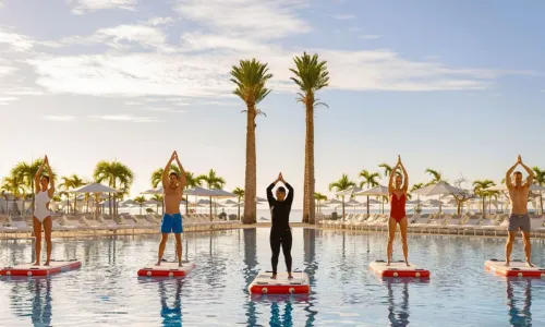 Una clase de stand-up paddleboard yoga temprano por la mañana es una excelente manera de comenzar el día en el resort, desafiando las habilidades de equilibrio y mindfulness, mientras se fomenta una conexión más profunda con la respiración. Para un entrenamiento más estimulante, los huéspedes pueden participar en una clase de boxeo en Blanc Fitness, donde pueden perfeccionar su juego de pies y sus destrezas de combate contra el saco, un instructor o con un compañero.