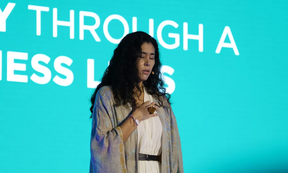 Heidi guió al grupo a través de una meditación centrada en el corazón para conectar y estabilizar a la audiencia.