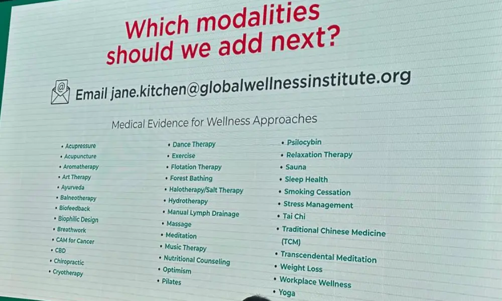 Diseño biofílico, breathwork, crioterapia, terapia de baile y terapia de flotación son nuevas modalidades que se han añadido este año. ¿Qué modalidades deberían añadirse e investigarse? Envía un email a ja**********@******************it.com con tus sugerencias.