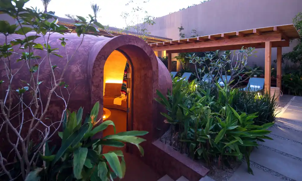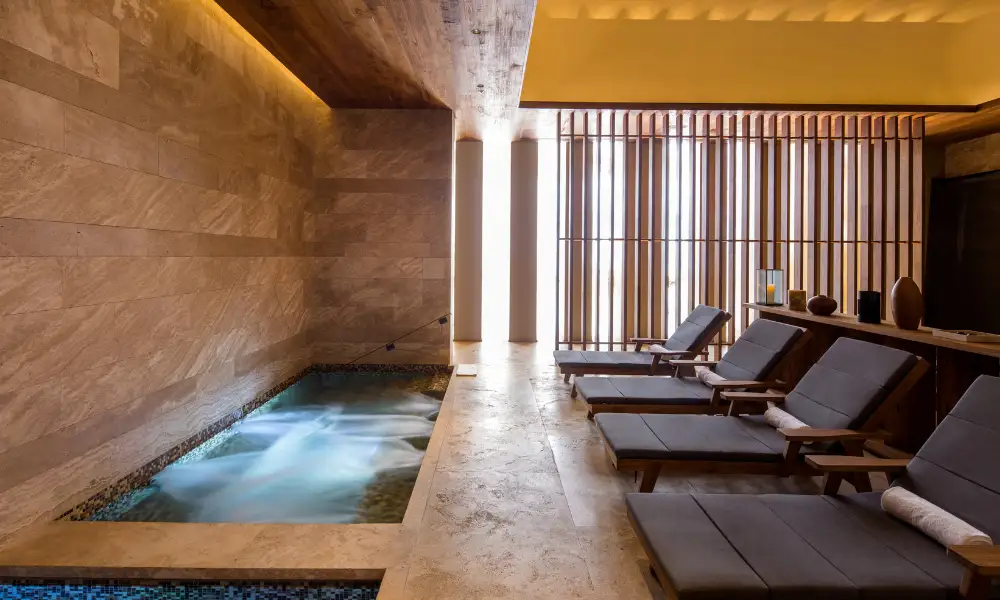 El Jasha Spa se inspira en el entorno natural y las antiguas tradiciones de la región. Un ambiente tranquilo que combina agua, calor y tacto para crear una experiencia de bienestar holística. El elegante diseño refleja una mezcla armoniosa de arquitectura moderna y elementos naturales orgánicos. El circuito de hidroterapia, en el corazón del viaje del spa, incluye sauna, baño de vapor, jacuzzi caliente, piscina de inmersión fría y loungers para relajarse. Estas instalaciones de hidroterapia están separadas para hombres y mujeres, que luego pueden unirse para disfrutar de la piscina sensorial al aire libre con camas de burbujas y una variedad de chorros para diferentes partes del cuerpo, incluyendo hombros, cuello, espalda alta y baja. Esta piscina al aire libre ofrece a los huéspedes una vista pintoresca del océano.