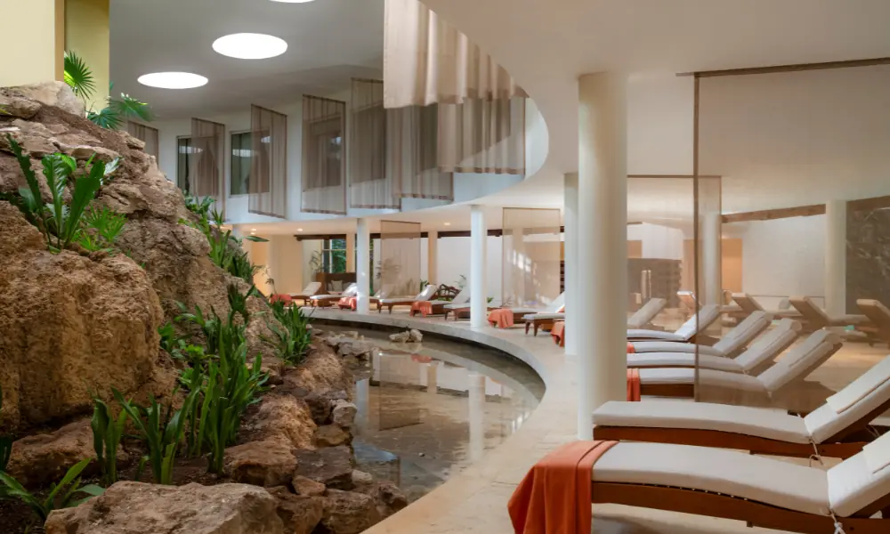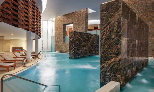 A cornerstone of the Wellnessing experience is Se Spa, where the hydrotherapy water ceremony provides a restorative journey to prepare the body and mind. This multi-step ritual includes a sauna, a chromotherapy steam room, and a clay room where guests can apply masks to the body, face, and hair before rinsing off and enjoying the experience showers. A sensory pebble walkway provides reflexology stimulation to the feet along with contrast therapy for the lower legs before guests move on to the sensorial pool and enjoy bubble beds, cascade waterfalls, jets for the back and shoulders, and a bubble volcano. A cold plunge pool refreshes the body and can be alternated with the hot jacuzzi.